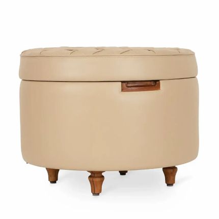 ALANKARAM Dold - Pouf en teck avec cuir beige