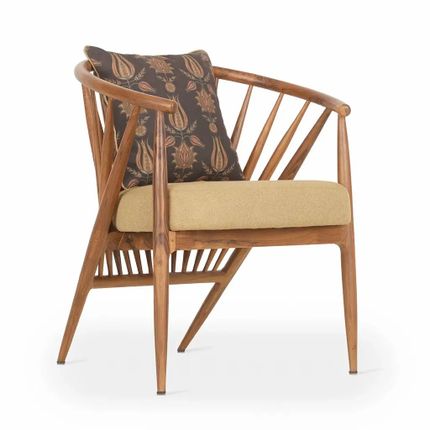 Hloma - Chaise de salle à manger en teck avec tissu imprimé vert