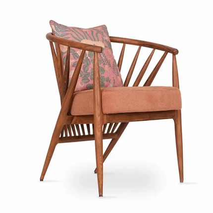 Hloma - Chaise de salle à manger en teck avec tissu imprimé orange