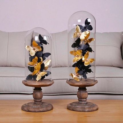S/2 ASS.DE PAPILLONS NOIR/GOLD SOUS GLOBE