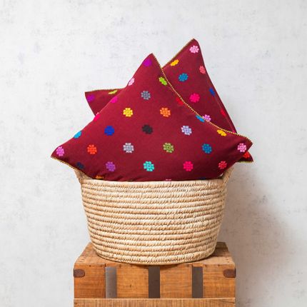 Coussin en brocart tissé à la main en bordeaux avec couleurs multicolo