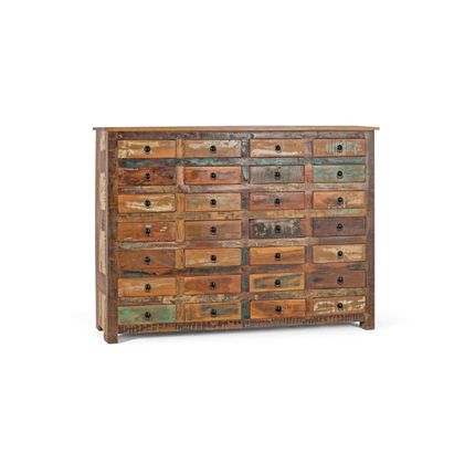 Buffet avec 28 tiroirs en bois recyclé fabriqué à la main