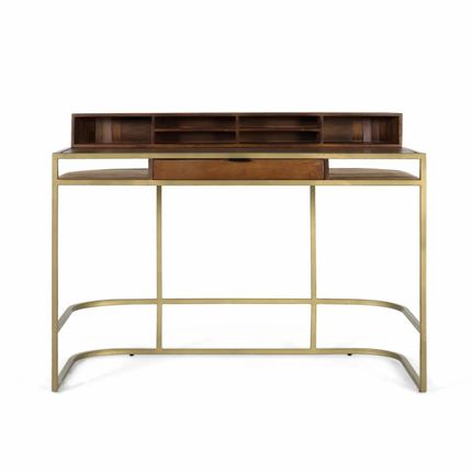 Bureau artisanal en bois de manguier avec structure dorée
