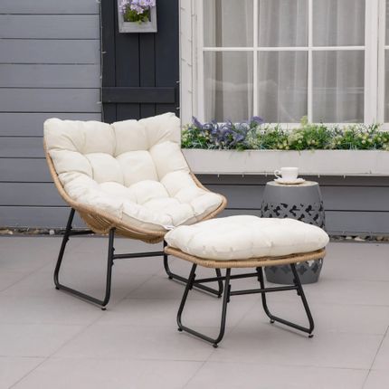 Fauteuil de jardin avec repose-pieds 2 coussins inclus