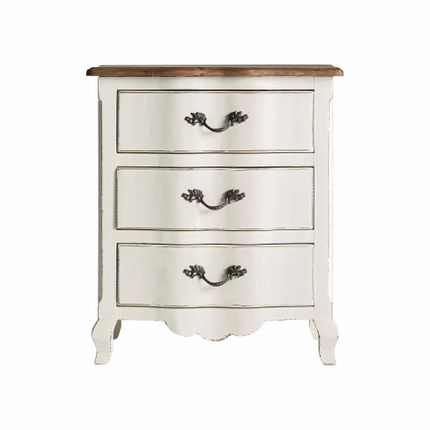 Table de chevet en bois de pin recyclé couleur blanc cassé en 60x40x70