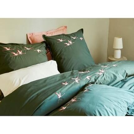 Linge de lit percale de coton brodée Les Voyageurs