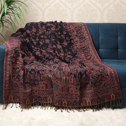 Vintage Mughal Merino Wool Blanket Shawl – Black Multi