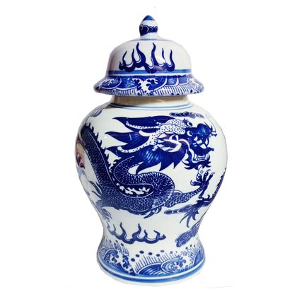 Pot à Gingembre Porcelaine Bleu blanc Dragon Peint à la Main