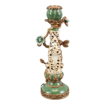 Bougeoir Léopard 25,5 cm - Vert - Résine