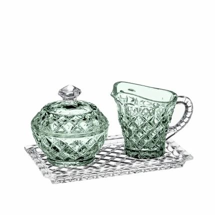 PEKALLA CRISTAL GLASS Ensemble en cristal Malachit sucrier - crémier et plateau - 3 éléments