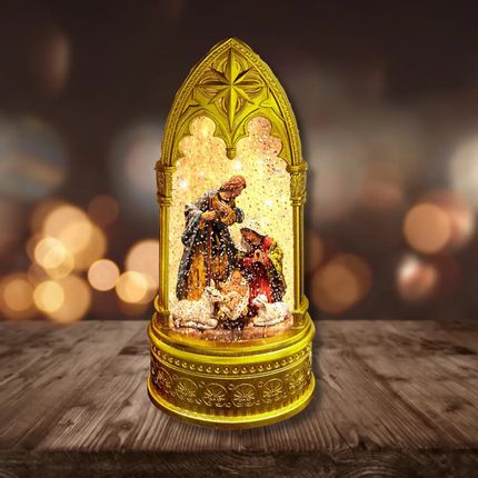 Lanterne Cathédrale avec Crèche – Scène Illuminée de la Sainte Famille