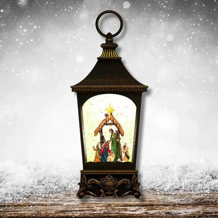 Lanterne Crèche LED Classique avec Paillettes, Lumière Chaleureuse, Minuterie et DC