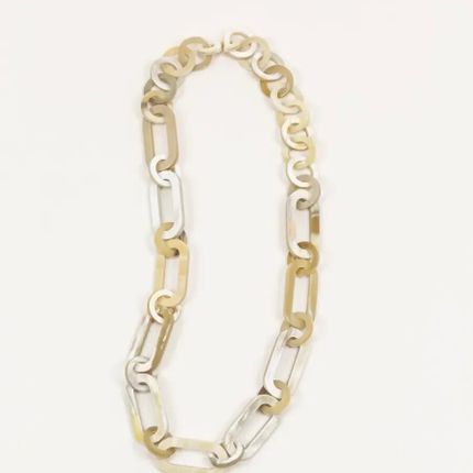 L INDOCHINEUR X RIVÊT Collier anneaux épais ronds et ovales bords droits en corne blonde africaine