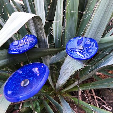 Petite fleur ronde en verre de couleur bleu foncé, bleu clair