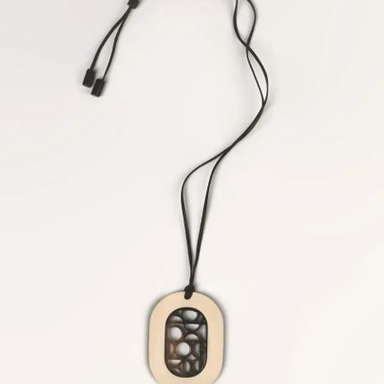 Pendentif oval Bauhaus en sabot de buffle et laque ivoire