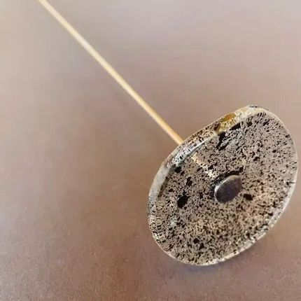 Petite fleur ronde en verre pour l'extérieur de couleur transparente et noire avec tige en acier inoxydable de 43 cm