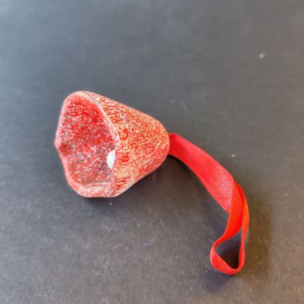 Cloche en verre sur un élégant porte-ruban en transparent-blanc-rouge