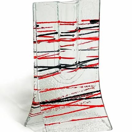 Petit vase transparent à rayures rouge-noir en 8x13 cm