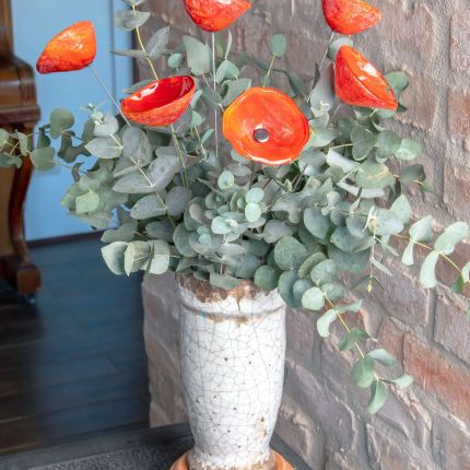 Fleur de calebasse en verre de taille moyenne pour l'extérieur de couleur orange avec tige en acier inoxydable de 43 cm.