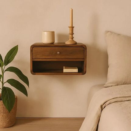 Artisan Furniture Table de Nuit Murale Courbe en Châtaignier, 1 Tiroir et Étagère Ouverte, Marron Foncé
