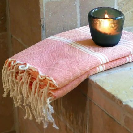 FOUTA EN COTON BIOLOGIQUE - COLLECTION HAMMAM - Couleur BLANC & CORAIL