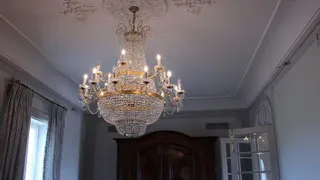 Réalisation d’un projet d’éclairage d’exception en Normandie, avec l’installation de 9 lustres de style Empire dans une salle de réception. Chaque lustre est réalisé en cristal avec finition or antique, mettant en valeur l’élégance classique et l’atmosphère prestigieuse du lieu. Cette installation sur mesure souligne l’équilibre entre tradition artisanale italienne et architecture d’exception, c