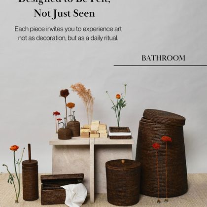 Create a fresh and organized atmosphere with handmade rattan bathroom accessories. With products such as soap dishes, cotton swab holders, trash cans, and trays, your bathroom will have a simple yet characterful look. Natural and sustainable materials offer long-lasting use. Timeless designs complement your daily routine with aesthetics.