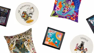 silk & cotton scarves, decorative cushions, porcelain plates, handbags