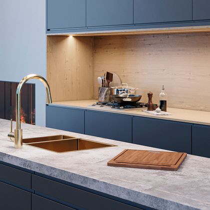 Éviers en acier inox avec bonde intégrée, disponibles en deux tailles avec une cuve et compatibles avec une installation à poser, à fleur ou sous plan. Petit modèle disponible en quatre coloris. Éviers composites avec bonde traditionnelle, disponibles en deux tailles avec une cuve et compatibles uniquement avec une installation sous plan. Finition noir mat. Accessoires de cuisine : distributeurs de savon à pression ronds/carrés traditionnels ou électroniques avec capteur infrarouge. Disponibles dans toutes les finitions de notre catalogue pour une harmonie parfaite avec votre robinetterie.