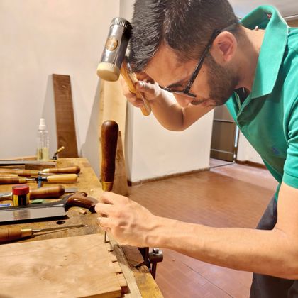 "Handmade back into Cabinetmaking" est ma collection d’armoires uniques en leur genre et en édition limitée. Je l'ai conçu et créé avec des outils manuels uniquement. Du dimensionnement et de la préparation du stock réalisés avec des scies à main et des rabots à main, aux menuiseries comme les queues d'aronde, les mortaises et les tenons, découpées avec des ciseaux, des maillets, des scies à main et des rabots à main, jusqu'aux finitions à l'huile naturelle, comme l'huile de lin bouillie et la cire d'abeille. Je n'utilise pas de machines ou d'outils électriques.