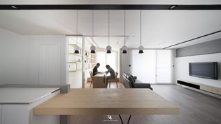 The white and grey-based apartment designed by award-winning INDOT INTERIOR DESIGN. To respond to the preference of the simple lifestyle from the house owner, they selected FUJI and LING in black and white to achieve the interior esthetic goal, and that nicely made a comfortable and relaxing space for the home.