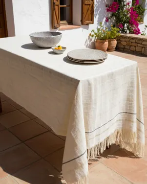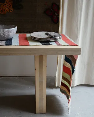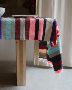 Fruit d’un savoir-faire ancestral et d’un engagement contemporain, nos tissus sont tissés à la main en Albanie par nos artisan·e·s. Conçus à partir de fils recyclés, ils conjuguent respect des ressources et raffinement esthétique.