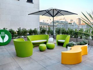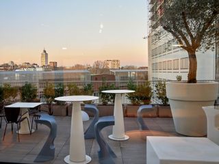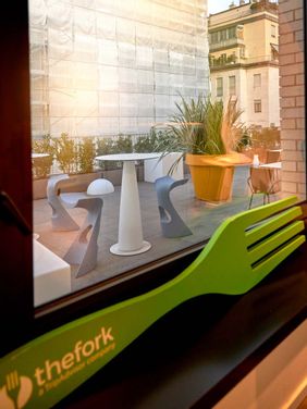 The Fork, une marque créée par la célèbre société TripAdvisor, a inauguré les bureaux milanais fin 2019. Toute la terrasse disponible pour les employés et les événements d'entreprise a été meublée avec nos best-sellers. Globo et Cubo lumineux ont été choisis pour créer différents points de lumière, tandis qu'au centre se trouve le comptoir Break Bar qui illumine l'espace. La collection Rap en Lime Green a été choisie pour le coin lounge, séparée par Wave et Wave Pot. Des tables Hoplà, des chaises Gloria et des tabourets Koncord complètent le mobilier de la terrasse.