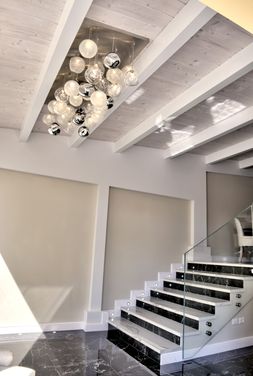 By entering 'The Moon Hotel', located a few steps from the historic center of Florence, you will immediately perceive a feeling of hospitality and elegance. The building has 21 rooms, plus 2 exclusive suites designed to offer maximum comfort and wellness to the guests of this Boutique hotel. In every room, the furniture is classic and bright, the result of a careful selection of furniture, materials and luxury products Made in Italy. The Murano glass chandeliers, thanks to their innate elegance and refinement, fully satisfy the lighting needs that luxury hotels such as The Moon Hotel have. That's why 'The Moon' has relied on the experience and professionalism of MULTIFORME® in the production of Murano glass chandeliers, to realize the decorative lighting of the entire hotel. Classic Murano chandeliers: TIMELESS The artistic glass lighting products of the TIMELESS line, the collection by MULTIFORME® dedicated to classic Murano chandeliers, welcome guests in the hotel lobby and reception area, thus immediately transmitting their great craftsmanship value and creating an atmosphere of exclusivity and refinement for all hotel guests. These large chandeliers in clear Murano glass, with silver leaf, handcrafted lampshades of refined cream-colored cotton and original Swarovski® pendants, can be found in smaller dimensions in one of the two hotel's suites. To light up the private rooms, elegant wall lights for the bedroom and glass pendant lights for the bathroom have been created. Moreover, refined Murano glass table lamps have been especially designed. In addition to this, large mirrored Murano glass wall lights, positioned along all the corridors of the different floors, in the landing around the elevator and in the refreshment area, complete the artistic lighting of the hotel. The classic Murano chandeliers were not the only lighting products created for The Moon Hotel: MULTIFORME® lighting, in fact, also dealt with the production of large, luxury chandeliers with crystals. The hotel commissioned the production of two special chandeliers for high ceilings made of crystals that make the main hall shine, as well as some Murano glass vases to decorate the environment and the Venetian handcrafted mirrors that can be found throughout the hotel. This collaboration with The Moon Hotel has allowed our company to challenge itself with a lighting project of great relevance and prestige, also offering to the guests of this renowned hotel the opportunity to get to know more closely and appreciate the tradition and beauty of the Made in Italy artistic glass.