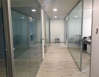 Pour la société AAA service srl, Association des Agents Allianz, Centrufficio Loreto a réalisé la rénovation des bureaux pour une superficie totale de 300 mètres carrés. Le projet s'est concentré sur les points suivants - rénovation de la salle de bain et de la petite zone de pause - démolition et reconstruction des murs en plaques de plâtre - création et installation d'un revêtement de sol stratifié - blanchiment des espaces - éclairage - murs équipés de la ligne Gemini - paroi manœuvrable sur mesure - paroi vitrée sur mesure avec verre spécial transparent 6 + 6 + pvb acoustique Pour l'ameublement Centrufficio a fourni : - Des bureaux directionnels de la ligne Doria complets de sièges directionnels Diana Grey avec dossier en maille. - Bureaux directionnels de la ligne Doria, sièges présidentiels et cantilever de la ligne REM. Dans la salle de réunion, en plus du faux plafond et de l'éclairage, les meubles suivants ont été insérés : tables de réunion blanches et chaises Kicca avec rembourrage bleu et structure en polypropylène blanc. La nécessité était de créer des espaces différents qui puissent garantir une certaine intimité tout en maintenant une continuité visuelle de l'espace, afin de ne pas le rendre trop fragmenté. Les parois vitrées sur mesure ont en effet très bien répondu à ce besoin. L'autocollant de fenêtre personnalisé avec le logo de l'entreprise a également été créé.