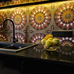 Ce projet commercial met en avant notre motif Hanthana dans des tons chauds et lumineux (curcuma, verveine, terracotta et coquillage), apportant une touche de couleur à cette cave et son épicerie fine.