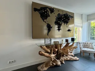 Cave à Vin Murale en Acier – Le Monde au Service du Design et du Vin Cette cave à vin murale en acier réinvente la silhouette du planisphère en une pièce d’art mural contemporain. À la fois fonctionnelle et décorative, elle met en valeur vos bouteilles tout en affirmant une véritable signature design dans votre intérieur. Idéale pour les amateurs de vin, collectionneurs et passionnés de design, cette création sculpturale allie savoir-faire moderne, inspiration culturelle et rangement pratique. Installée dans une maison privée, une salle de dégustation ou un concept store, elle sublime l’expérience du vin et devient un véritable objet de conversation. Plus qu’un simple rangement, c’est une célébration du design global, du voyage et de l’art de vivre autour du vin.