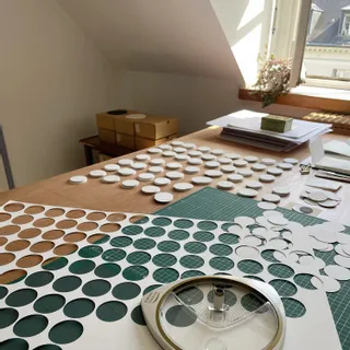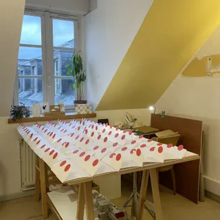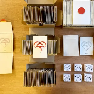 J'ai rencontré Hélène et Yvon sur un marché de créateur.ice.s (label Fabriqué à Paris) devant la Mairie du 4e en avril 2025. Pour leurs cadeaux d'affaires de fin d'année, c'est un peu une gentille compétition de qui de leur réseau trouvera l'attention la plus originale, celle qui surprendra tout le monde et fera un peu mouche. J'ai été ravie de co-concevoir avec eux ces 120 cartes coeurs où l'on a personnalisé les couleurs selon leurs envies pour faire écho à la période de Noël, imprimé le logo de leur entreprise sur un rond mobile au dos -où ils écriront leurs voeux à la main- et enfin créé une enveloppe-étui sur mesure pour mettre en valeur la carte et la protéger lors de l'envoi postal. Le résultat, 120 cartes aux airs de friandises de Noël. Miam !