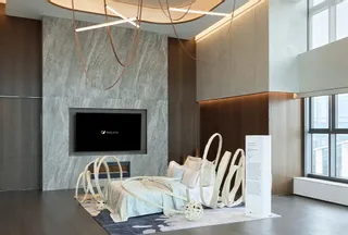 Chronos Etchings Presented at PULLMAN AMBASSADOR EASTPOLE Installation Art 3.5 × 3.9 × 2.2 m 11.5 × 12.8 × 7.2 ft Mixed Media 2025 “Chronos Etchings” is a symbolic artwork representing the 1937 Edition commemorating the 90th anniversary of Crown Goose Yacht. It embodies the transfigured form of a yacht’s original timber, reborn through a process of deconstruction and resurrection after a long voyage. Originating from a primordial seed, the timber assumes the role of arche, shrouded in the veil of time, layered with the strata of the past and the representations of the present upon the grain of the wood, and reconstituted into a new order. The spiral curves that envelop the bedding capture nature’s intrinsic grammar and the intuitive artistic values of humankind, reviving the eternal flow of time. The rhythmic structure of overlapping waves echoes like ripples, manifesting an ontological resonance between the tangible and the abstract through elemental materials. Ultimately, this work converges heritage inherited from past voyages with the unfolding trajectory of future journeys, transforming fabric into a sculptural medium that pierces the depths of the individual psyche—not as a commodity, but as a threshold into a multi-dimensional sensory journey. By exploring the boundaries between memory and oblivion, reality and illusion, materiality and immateriality, Crown Goose’s 90-year odyssey becomes a monumental declaration—a condensed aesthetic force transcending time and space, elevating life itself.
