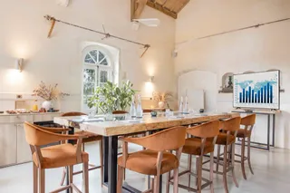 Grande table de banquet réalisée sur mesure pour la brasserie des Flâneurs appartenant au domaine de l'hotel 5 étoiles de la Nauve sur la commune de Cognac. Une table haute pouvant accueillir 16 convives.