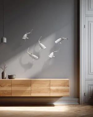 The Ocean Collection – Expérience Intérieure présente une sélection soignée de sculptures en porcelaine contemporaines intégrées dans des environnements résidentiels et hôteliers raffinés. À travers divers salons, chambres, salles de bains et halls d’entrée, le projet montre comment chaque pièce – raies manta, requins, tortues, baleines et l’Aquanaut – devient un élément sculptural central. Toutes les œuvres sont fabriquées à la main en Europe et peuvent être installées au mur ou posées librement. Plusieurs finitions sont disponibles, dont Blue Edition, White Edition ainsi que des versions chromées ou dorées, réalisées sur demande.