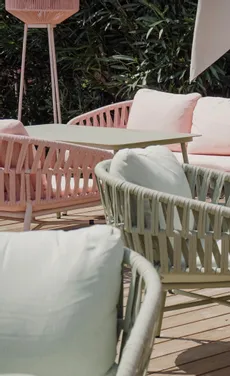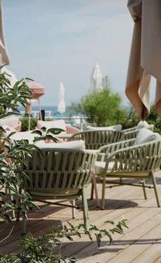 Nous avons entièrement aménagé l’extérieur de ce restaurant en bord de plage, en créant une ambiance élégante et accueillante. Chaque banquette, fauteuil et table basse a été conçu sur-mesure, dans des teintes délicates de rose poudré et vert sauge, pour une harmonie parfaite avec l’environnement. 💡 Nos terrasses peuvent être entièrement personnalisées : Coloris au choix Structure en aluminium Tissus et perles anti-UV selon vos préférences