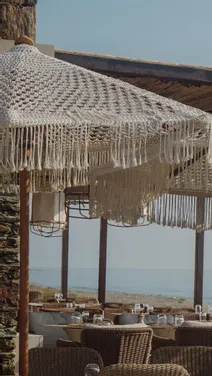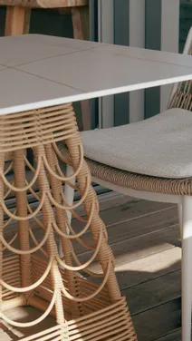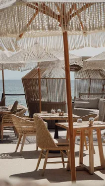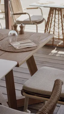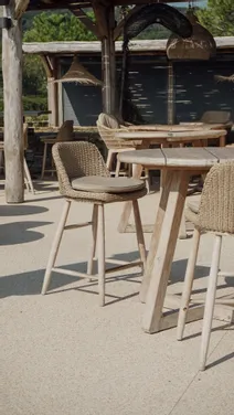 Nous avons entièrement aménagé le restaurant La Caravelle, intérieur et extérieur, avec un thème plage qui fait voyager dès l’entrée. Le bois de teck naturel se marie à la céramique blanche pour créer une ambiance lumineuse et apaisante. Les chaises et tabourets en Viro tressé apportent confort et légèreté, tandis que les parasols en macramé blanc ajoutent une touche artisanale et estivale. 🌊 Des tons clairs et pastels viennent compléter ce décor, pour un lieu qui respire les vacances, le bord de mer et les moments partagés. 💡 En résumé : nous créons des espaces sur-mesure, élégants et immersifs, où chaque détail est pensé pour faire rêver vos clients