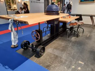 We transformed the iconic SL-015 “The Jigger” into a fully functional BBQ table. Combining industrial design with practical functionality, this custom table features a robust steel base and a heat-resistant tabletop integrated with a built-in BBQ. Perfect for dining, cooking, and social gatherings, it demonstrates the versatility and craftsmanship that Sturdy-Legs offers in bespoke furniture.