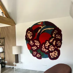 Projet Prestige Cellar France Paris Donner accès à de grands millésimes avec service et connaissances. Parfaire l’expérience client jusqu’ au détail de la dernière attente, mais le faire de manière créative. Un pouf d’assise rond en volume organique, rappelant les boites laquées asiatique mais dans les couleurs codes de la maison. Asian Wood déploie des formes organiques en volume, jouant sur les matières et le textures ainsi que les nuances de couleurs. PIECE SUR MESURE PIECE NUMBER 69 Dimensions 80cm x 45cm Fibers Laine de Nouvelle Zélande, Laine du Portugal, Bambou, Feuilles d’or.