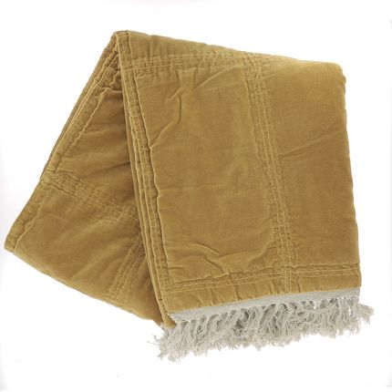 Plaid en velours de coton, doublure de coton Cousue à la main larges franges en gros lin Dimensions 130x250 cm