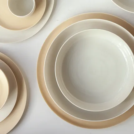 KAYA est une série d'assiettes, de tasses et de bols uniques fabriqués à la main en porcelaine de haute qualité. Les délicats tons sable mat coquille d'œuf et grège-écru ainsi que le blanc clair brillant déterminent la couleur. Pour une qualité de conception supérieure à la moyenne, la série complète MAOMI Porcelain KAYA a reçu le prix international de design « FOCUS SILVER » de l'État du Bade-Wurtemberg en 2020. La série comprend 5 tailles d'assiettes, 4 tasses et 3 bols.