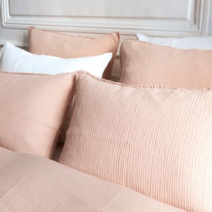 Housse de couette en gaze de coton Rose poudrée, matière très douce, moelleuse et tendance. Cette gaze de coton est légèrement gaufrée. Un vrai bonheur de retrouver son lit. Label Oeko-Tex standard 100.