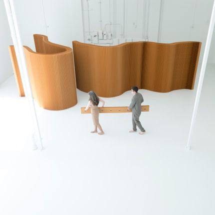 Un système modulaire de cloisons autoportantes, paper softwall conçu par molo donne aux utilisateurs la capacité de transformer leur environnant avec une aisance spontanée. Chaque paravent pliant peut s’étirer jusqu'à cent fois sa forme compressée. Leurs panneaux d’extrémités aimantés brevetés permettent de nombreux de softwall à se connecter entre eux en sculptant des atmosphères et des ambiances captivantes. softwall en papier est composé d’un mélange soigneux de fibres à la fois nouvelles et recyclées. Comme pour softwall en textile, paper softwall est entièrement recyclable.