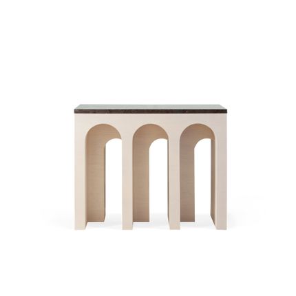 La console Arcade, une pièce d'inspiration architecturale en bois de chêne avec plateau en marbre.